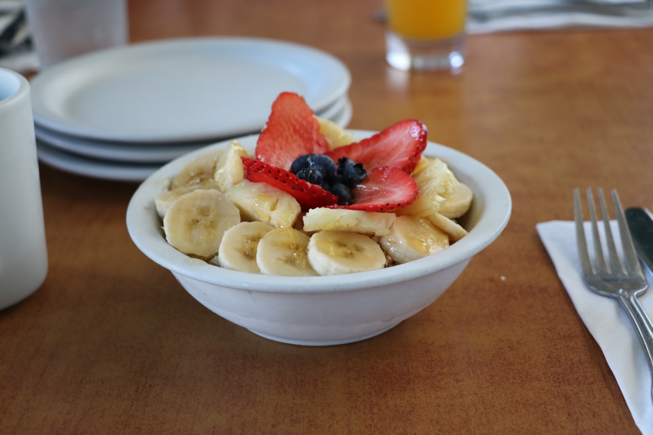 日本語メニューでは、日本人向けと思われるパンケーキと食事のセットメニューもあるけど、一人では食べきれない量なので、アサイーボウルと併せて3人でシェアして朝食には十分。