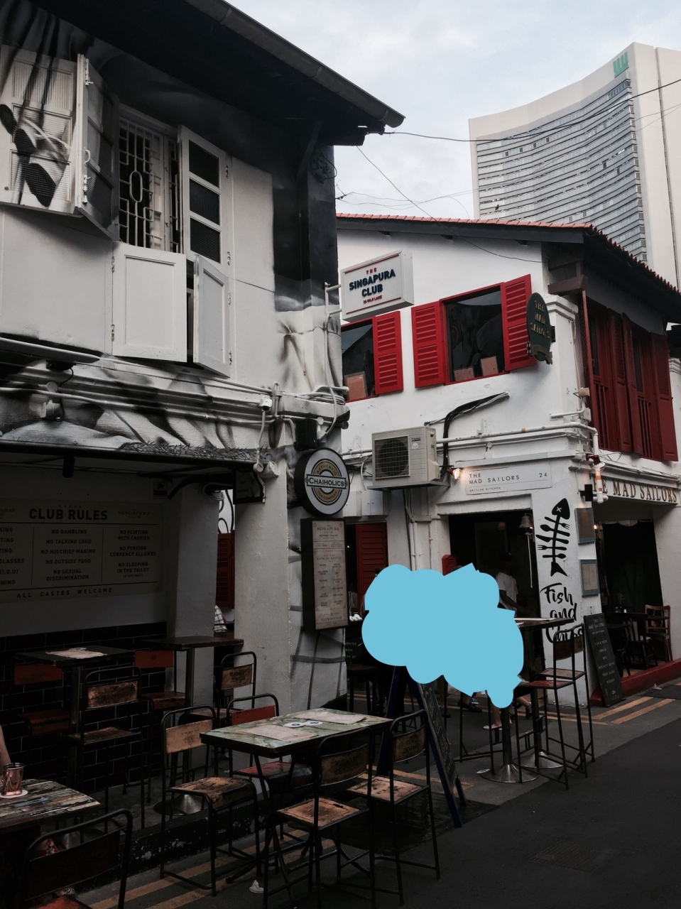 アラブストリートの近く、モスクを中心としたカンポングラムと呼ばれるエリアのhaji laneという細い路地。カフェ、レストラン、雑貨、洋服店が並びます。ショップは若者向けが多いかな。カフェもシティでは見られないような雰囲気で個性的。