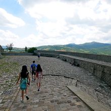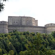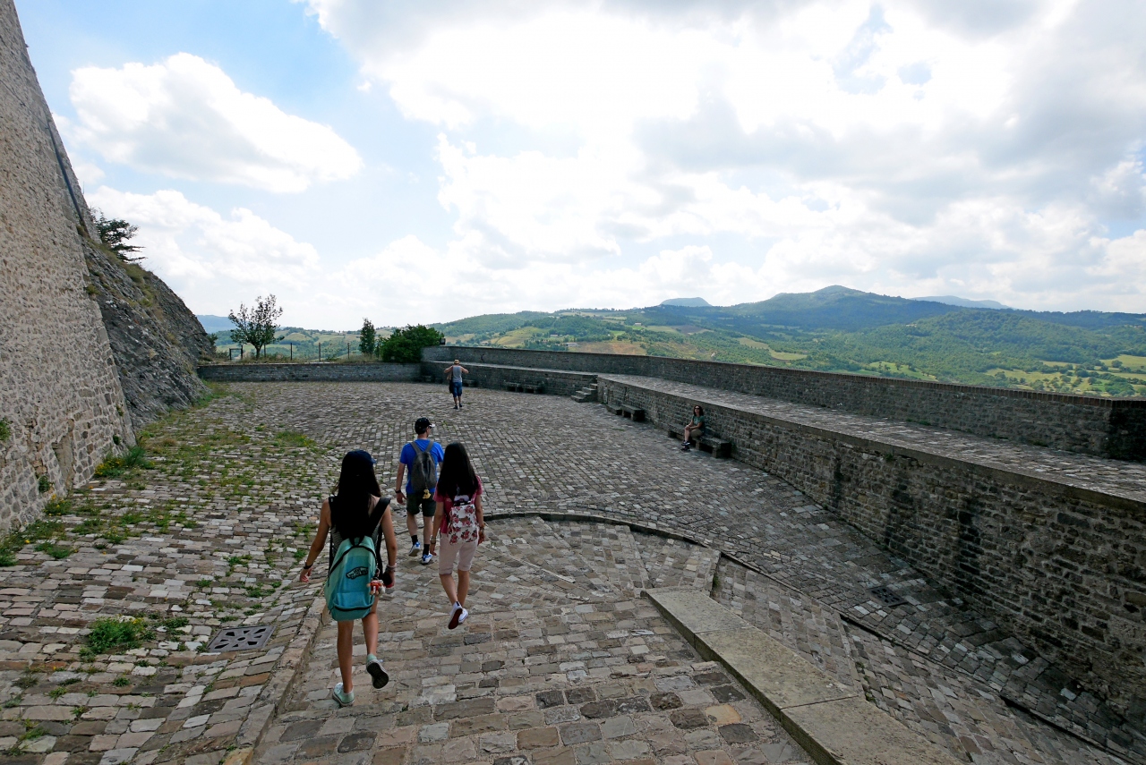 サンレオ城に登る.そこからの絶景に圧倒される.サンマリノがよく見えたし,断崖絶壁がすごい.良くこんなところに城を作ったねえ.すごいねえ.詐欺師カリオストロもこれでは逃げられないね.しかしこの城,ウフィツィの有名な絵のウルビーノ公フェデリーコ・ダ・モンテフェルトロ公がつくったものだ.絶景に圧倒 サンマリノも良く見える.中の展示は牢獄や拷問を中心に,個人的にはあまりよくなかった.『ルパン三世 カリオストロの城』に登場するカリオストロ城のモデルとなったともいわれているので日本でも有名だ