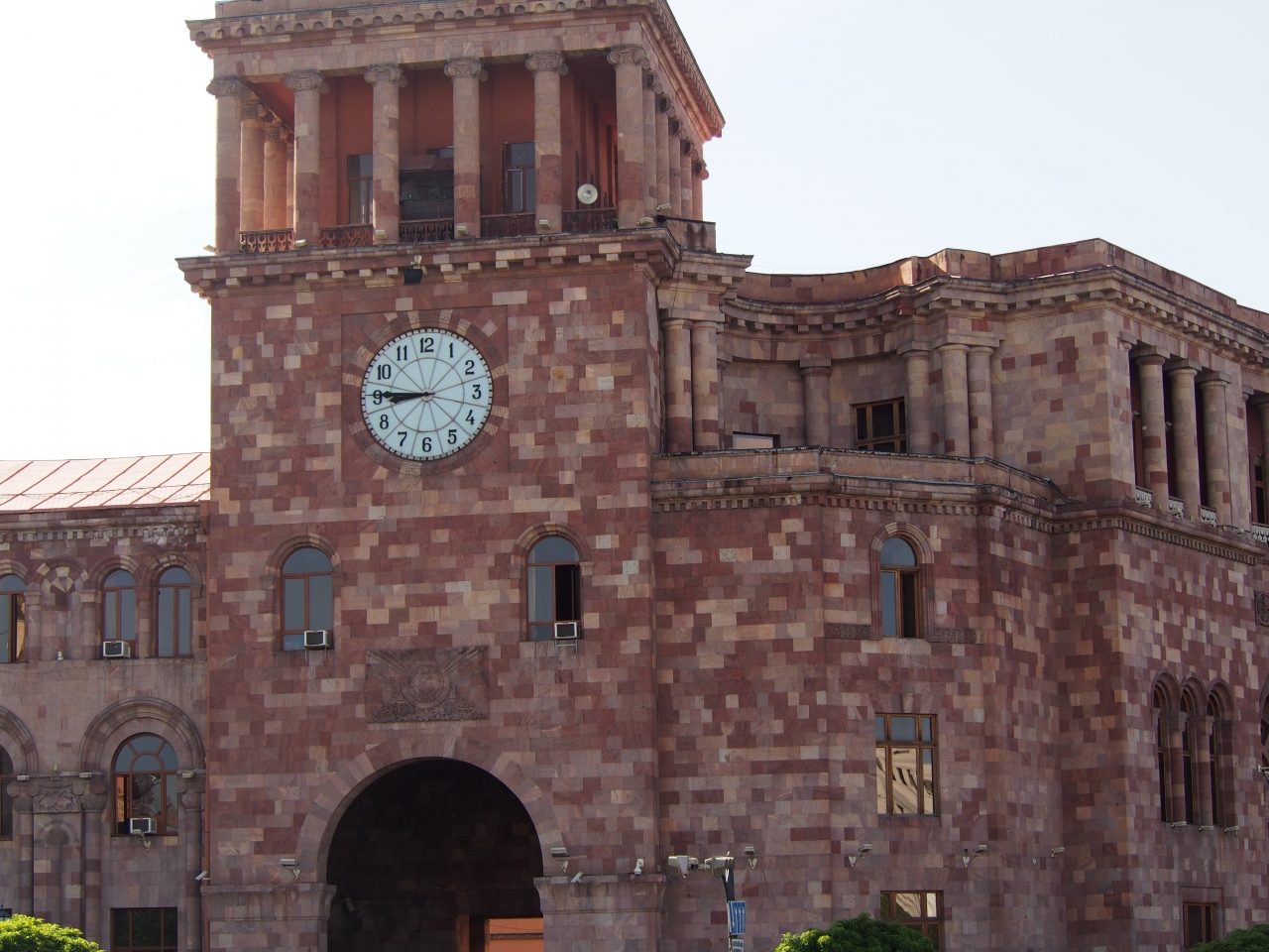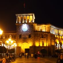アルメニア政府は共和国広場に面して建つ建物で、国立博物館の隣にある建物です。アルメニアでよく見かける赤褐色の砂岩の建物で、中央部の上部には時計盤が付いています。政府機関なのでなかに入ることはできませんが、外観を見るだけでもいいです。夜間にライトアップされた姿も美しいです。共和国広場はエレバンの中心の広場なので、エレバン滞在中に何度も来ることがあるので、違った時間帯でみるのもいいです。