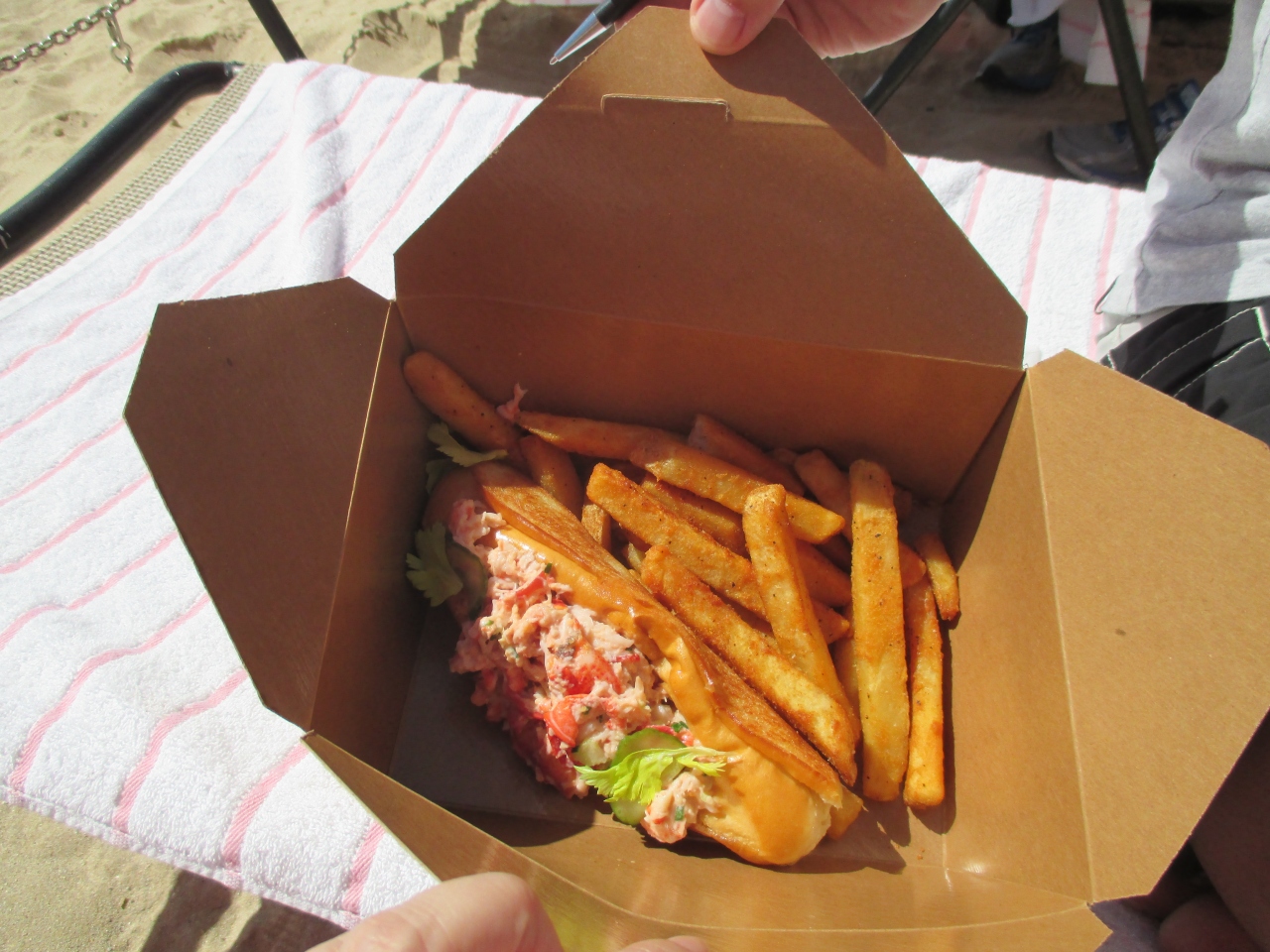 ロイヤルハワイアンに宿泊し、プライベートビーチで過ごしているときに、「マイタイバー」を利用しました。ビーチでスタッフからメニューを受取り、ロブスターロールと、ハンバーガーをオーダー。スタッフは、ビーチまで運んでくれます。「マイタイバー」で食事したい場合は、シャツと履物を着用が必要です。ロブスターロールは、ロブスターがたっぷり入っていて、ぷりぷりでおいしかったです。また、ハンバーガーもボリュームたっぷりでした。ビーチではアルコールはいただけないので、レモネードをいただきましたが、甘すぎず、すっきりした感じがGOODです。
