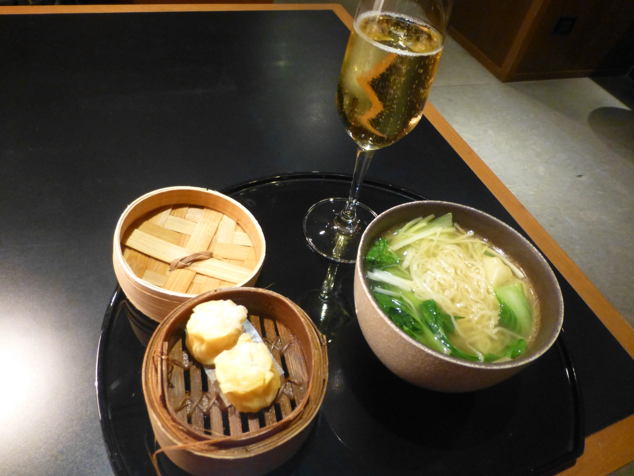 朝でしたのでキャセイラウンジで有名な麺系はワンタンメンしかありませんでしたが、おいしくいただきました。