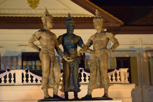 スコータイ王国のラームカムヘーン王、パヤオ王国のガムムアン王、そしてラーンナー王国のメーンライ王で、同盟を誓い合った逸話を元にして建てられた。