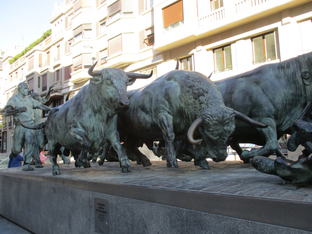 サンフェルミン祭の時に行ったわけではないですが、闘牛場の近くにサンフェルミン祭りの様子を表す非常にリアルな銅像があります。地球の歩き方にも載っていませんが、迫力満点の牛がいっぱいの銅像です。これは必見です。