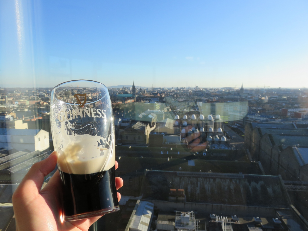 ダブリン市内を一望できるグラビティバーでギネスを1杯飲むか、グラビティバーの一つ下の階で自分で注いだギネスを1杯飲むかを選ぶことができます。