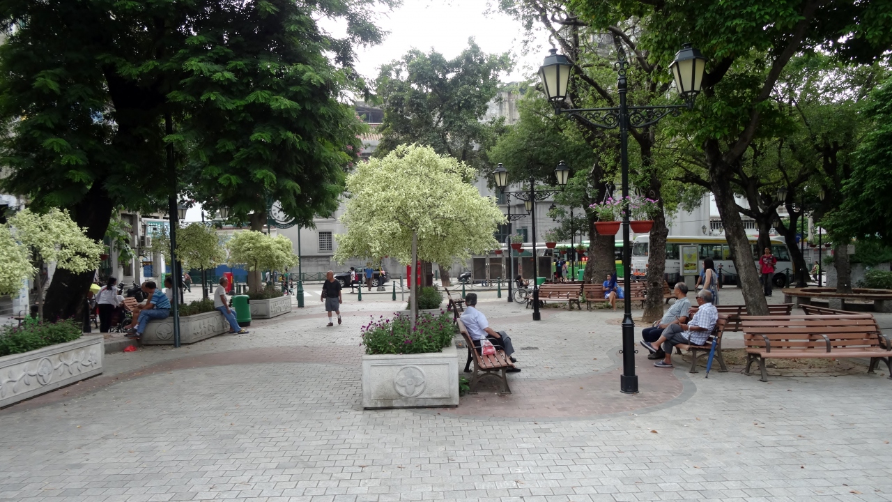 カモンエス広場は、地元のおじいちゃん達がひなたぼっこをしており、普通の公園でした。元々、右奥にあるカーサ庭園の一部だったそうです。邸宅の所有者が庭で白い鳩(鴿)を飼っていたため、マカオ名は「白鴿前地」となりました。