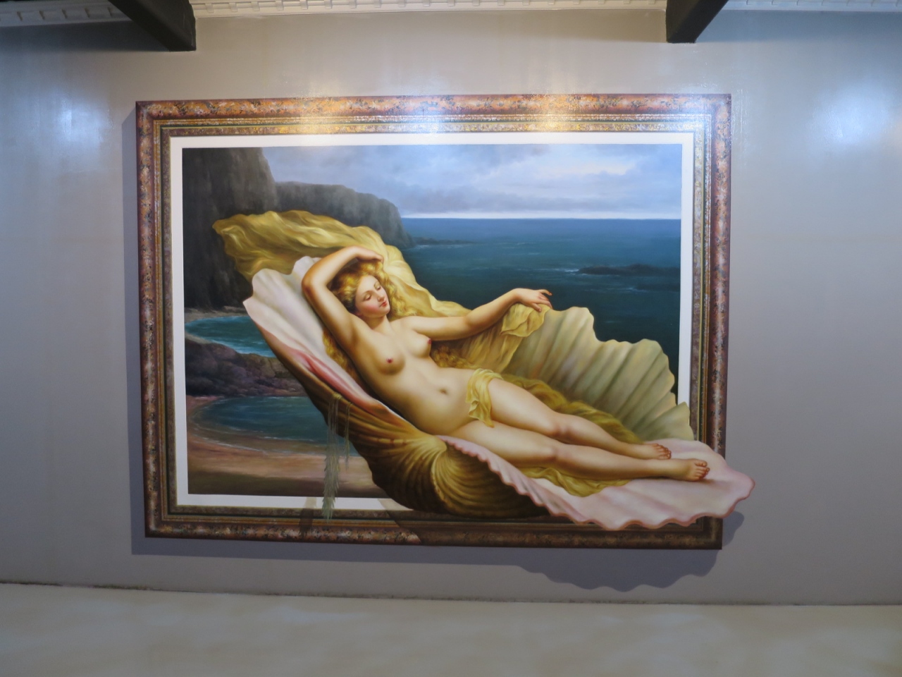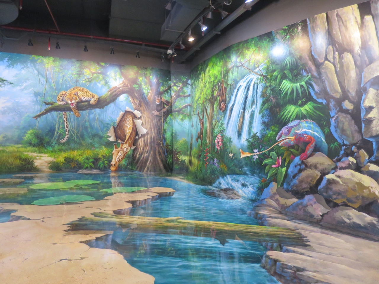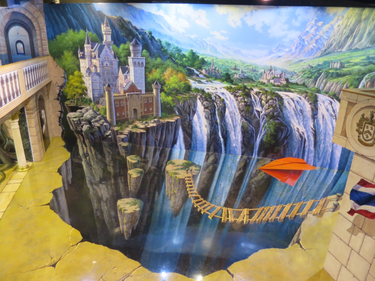基本、イラストだが、ちょっと離れてみると、立体的になる。これに自分などを絶たせると、絵の中にいるような感じになる。多くの人が絵の前に立ち、トリッキーな絵と写真を撮っていた。