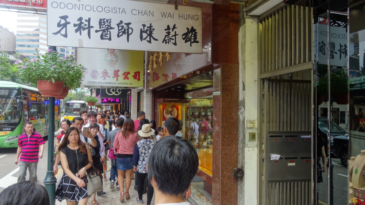 通りは車量も人通りも多く、マカオのメインストリートの一つだと思います。貴金属ショップや時計店が多く軒を連ねており、カジノの収益を落とすように誘惑されるストリートです。