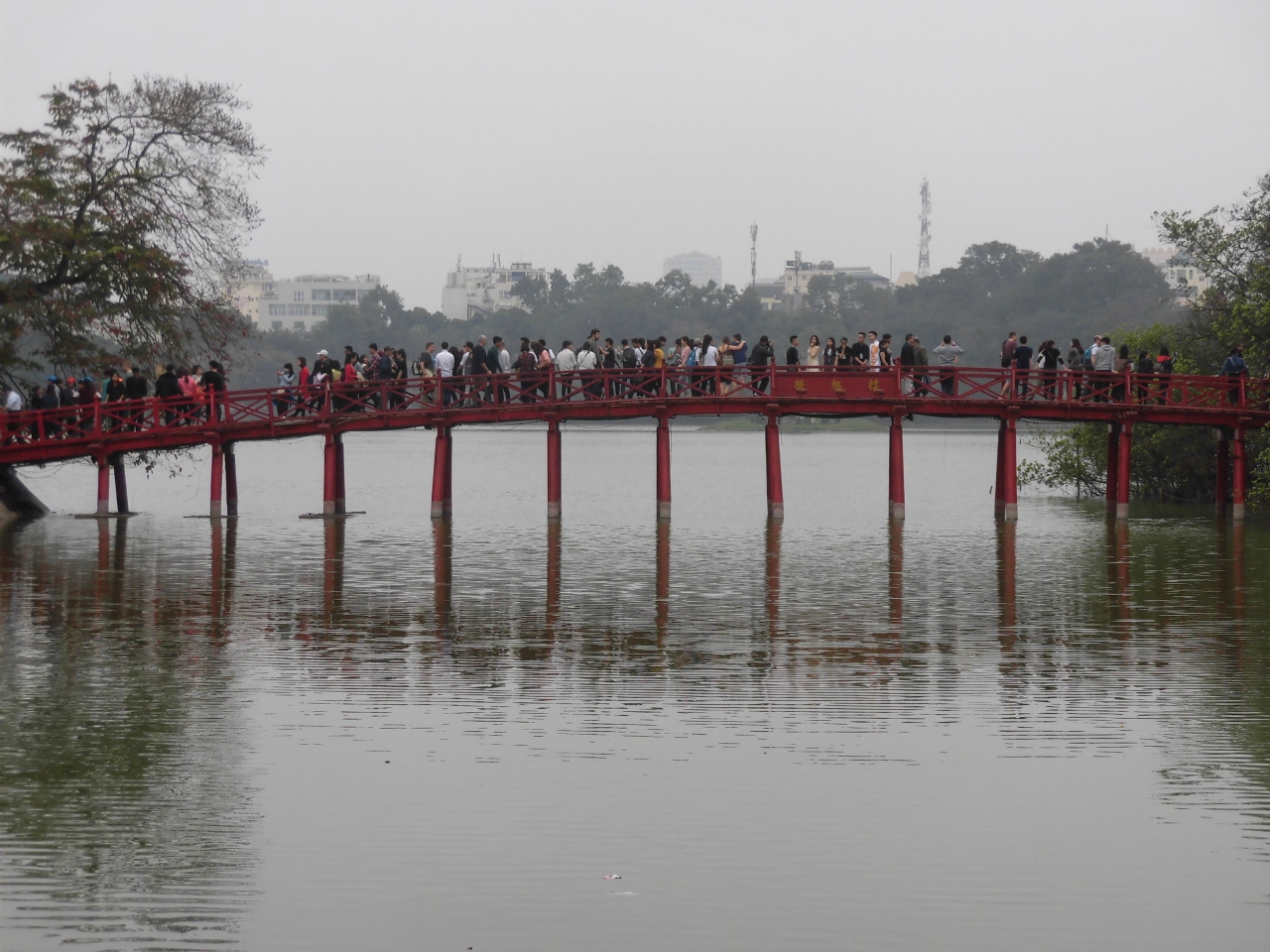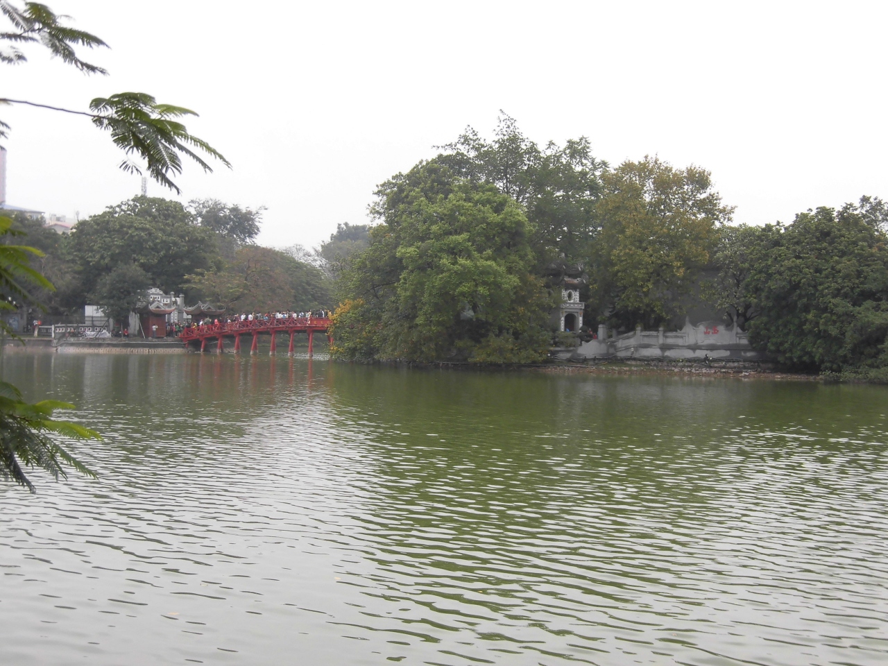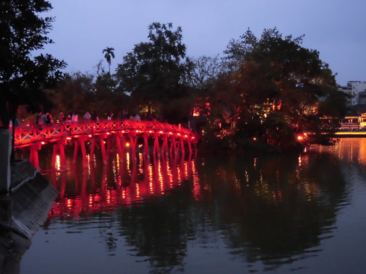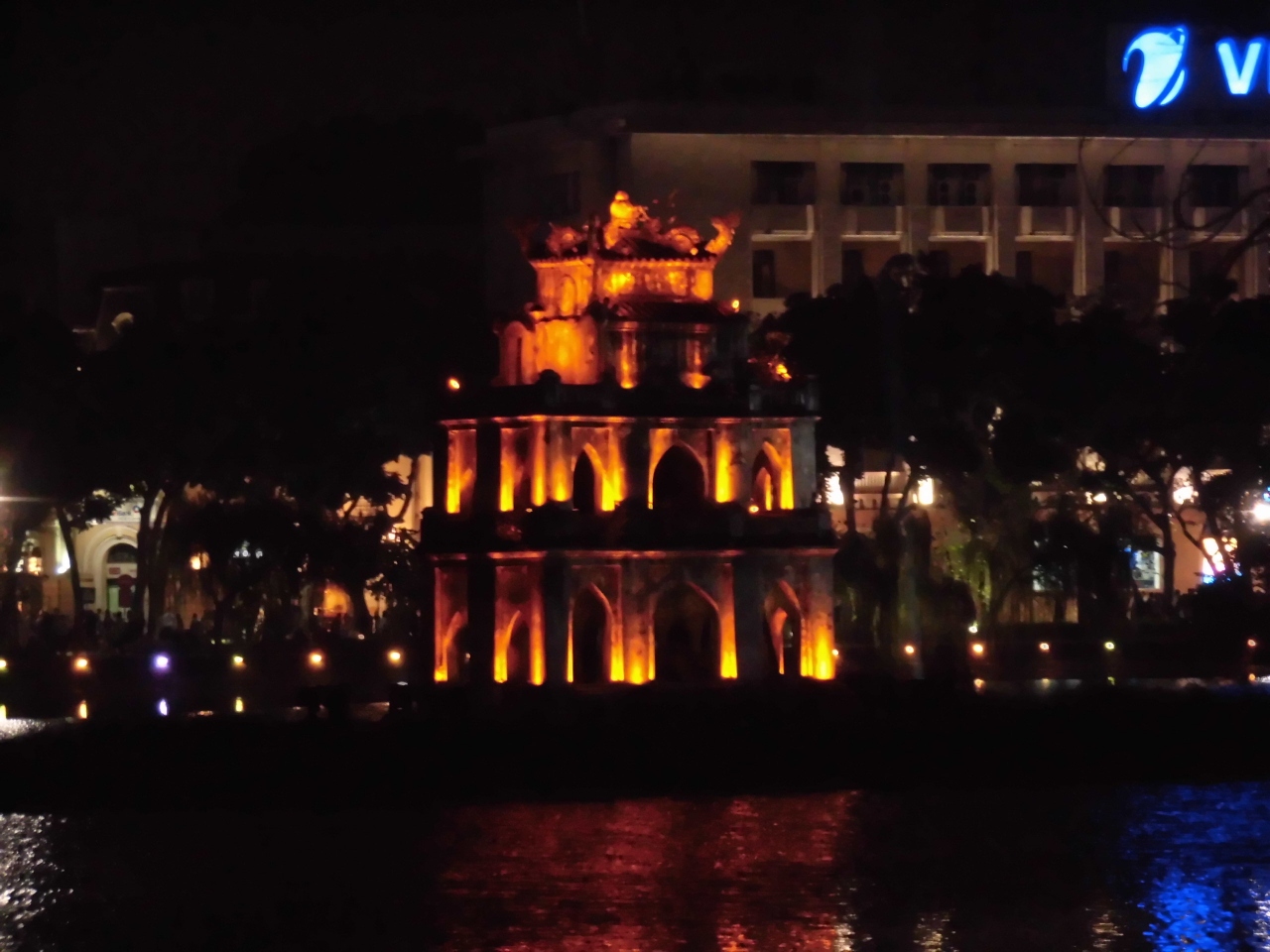 ハノイの中心地に有り景色の綺麗な場所です。観光客で賑わっていますが、日曜日には北側周辺の道路が歩行者天国になり、夕涼みがてら現地の家族連れも大勢集まっておられます。夜には玉山祠と亀の塔がライトアップされ綺麗です。