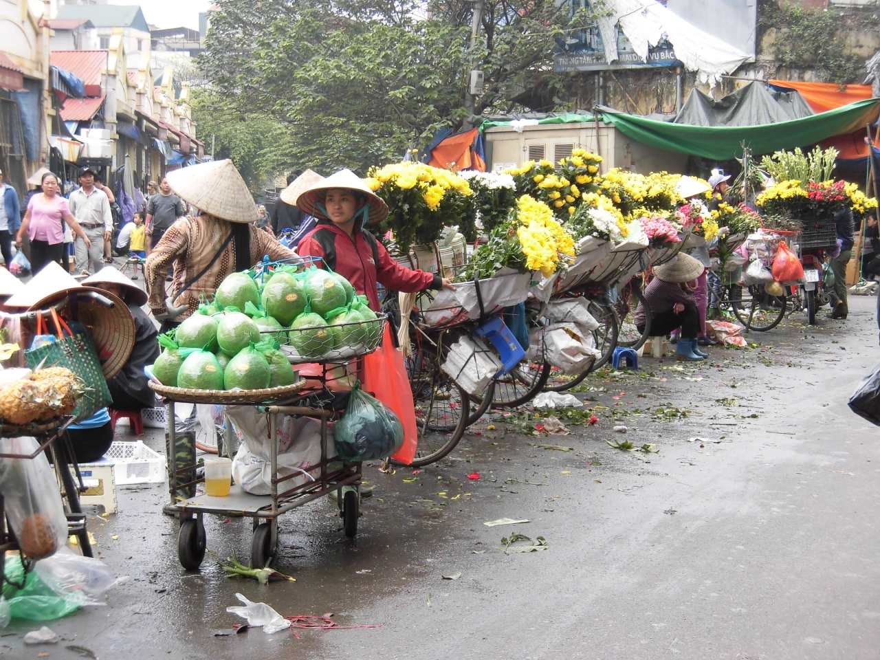 ハノイ最大の市場と言われているとおり、今まで各地で見てきた市場よりとてつもなく広いです。郊外のショッピングセンターぐらいあります。でも中の通路は狭く、商品も通路まで山積みされていることろはベトナムの市場らしいところです。観光客向けというよりは、地元の方向けです。