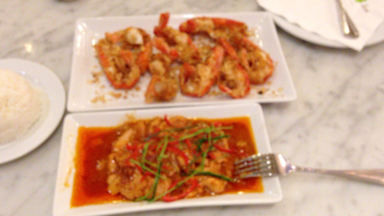 エビは素揚げにガーリック辺でまぶしたモノで、こちらは皮をはぐのに手間取ったが、美味しかった。