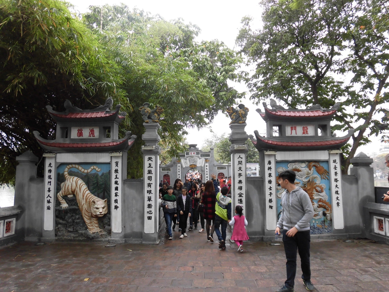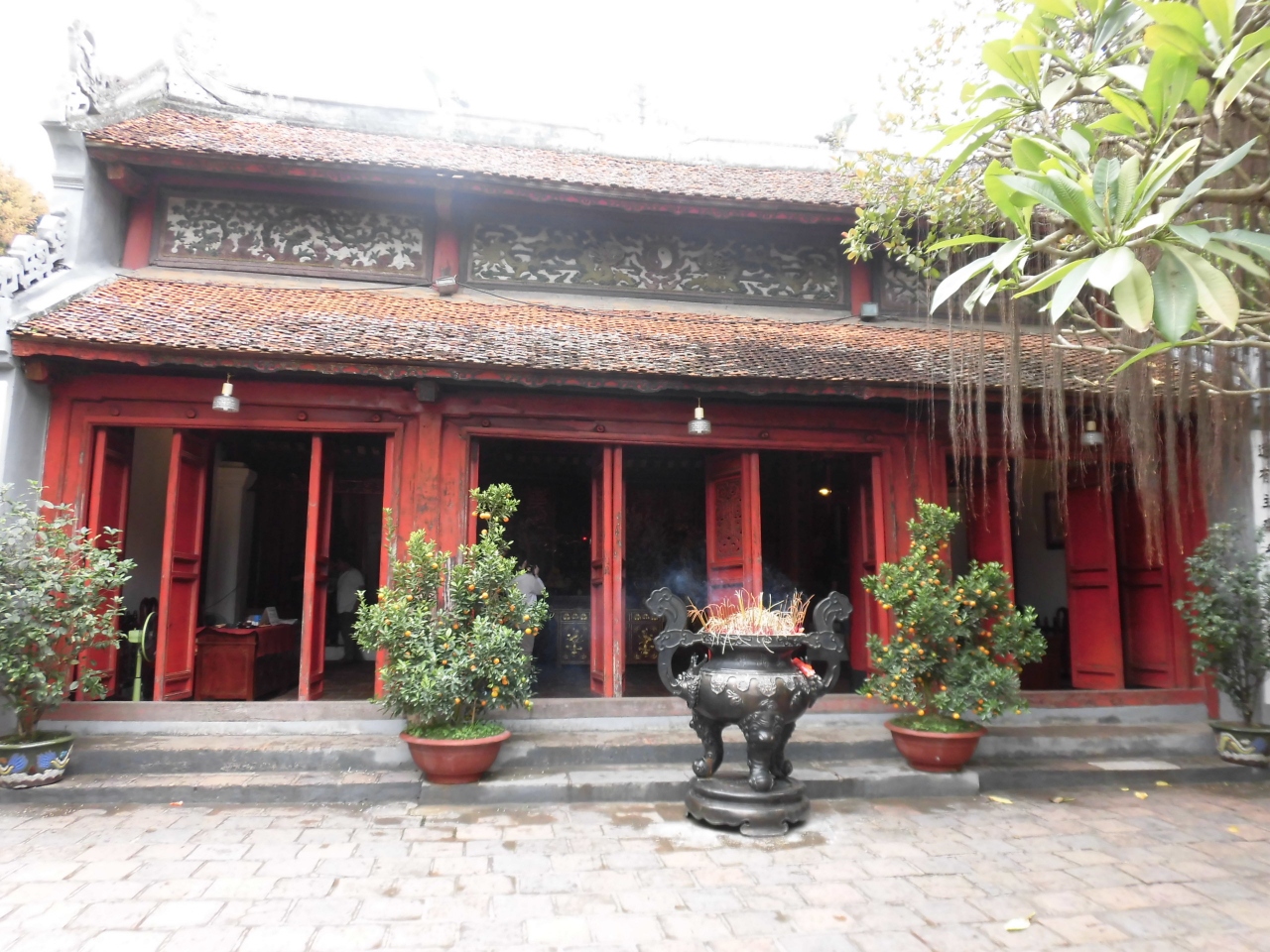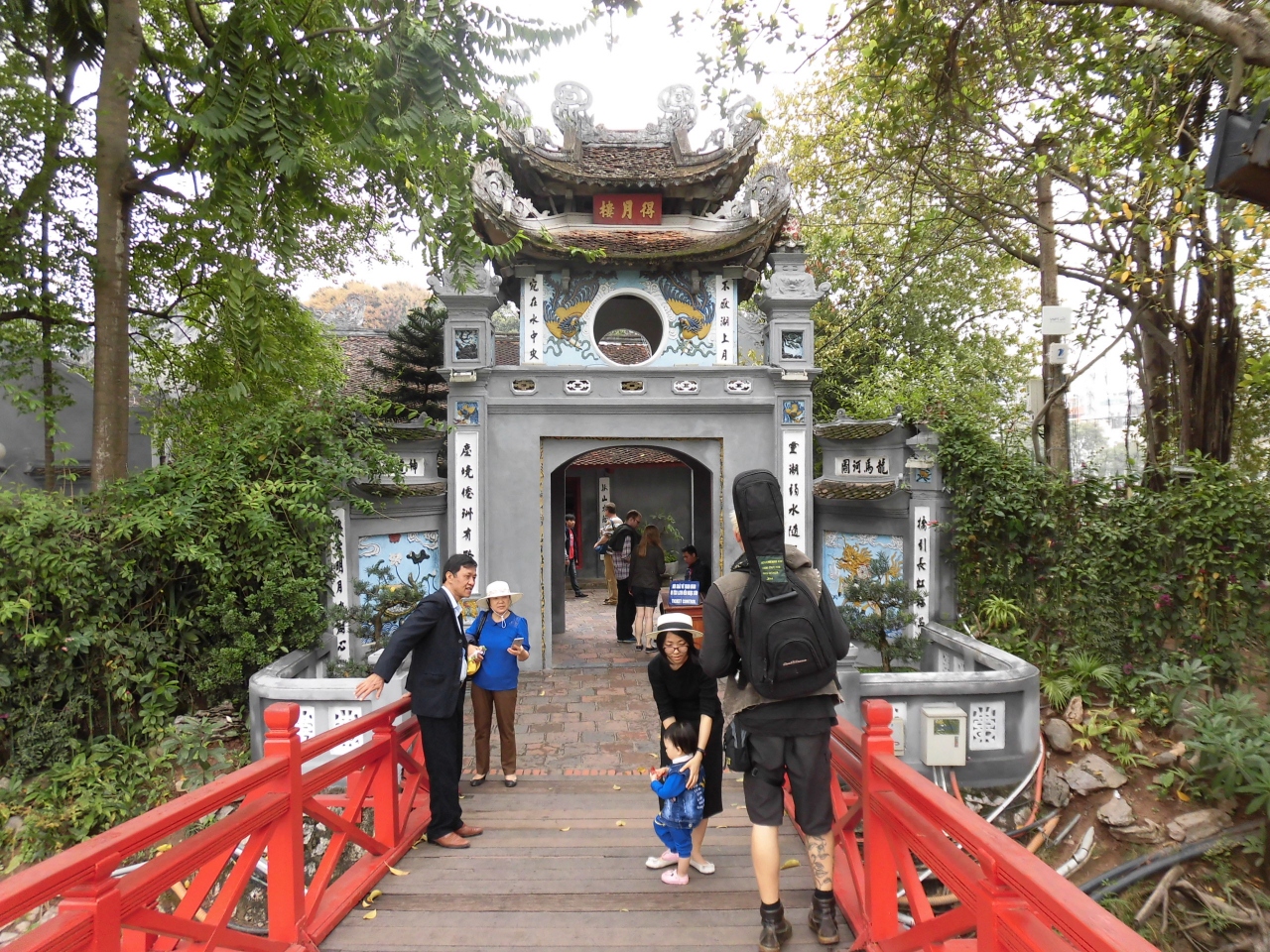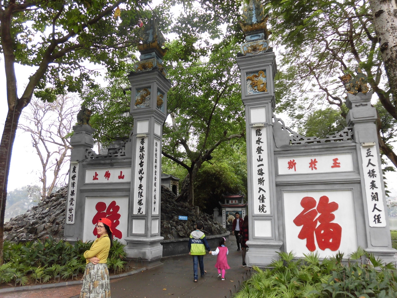 ホアンキエム湖にあるゴックソン島にあり、真紅の棲旭橋がとても綺麗です。夜は橋と島がライトアップされますので、昼間とは違った美しさを見ることができます。この橋を渡って左側に入場券売り場があります。橋は無料ということもあり、ベトナム人の撮影スポットになっています。中に入ると、英雄チャン・フン・ダオと伝説の大亀の剥製が祀られています。