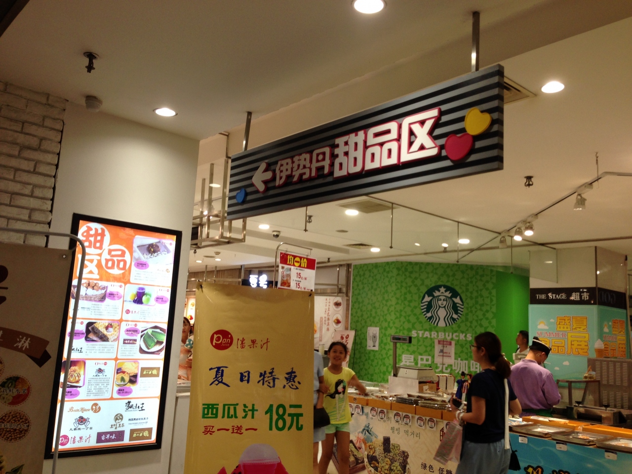 販売しているおにぎりは山本海苔店の海苔を使った日本風のもの(他の店で売っているものはどうしても中国ナイズされている)で駐在者としては懐かしい味です。また同じ階にはスイーツの店が集まった店もあります。
