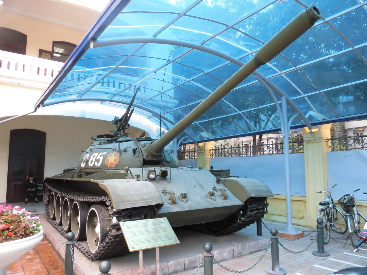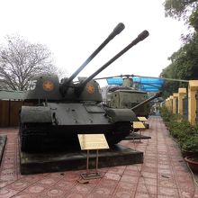 ベトナム軍の紹介は正直よくわかりませんでしたが、ベトナム戦争で使用された戦車(館内の戦車は国宝)や戦闘機などが多数展示されています。博物館入口左側のミグ21型戦闘機も国宝です。建物の左側から奥の方へ進めば、多数の戦闘機や大砲などが展示されています(目立たない奥にあるので、観光客が少なかったです)。