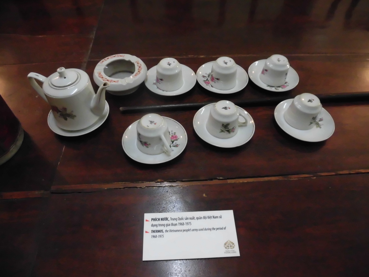タンロン遺跡の中の敬天殿の北側の建物(薄緑色)の横に地下へ降りる階段がありますが、わかりにくいです。地下深く階段で降りていくと、ソ連の援助で作られた作戦指令部として使用された部屋と当時使用されていた電話などが展示されています。
