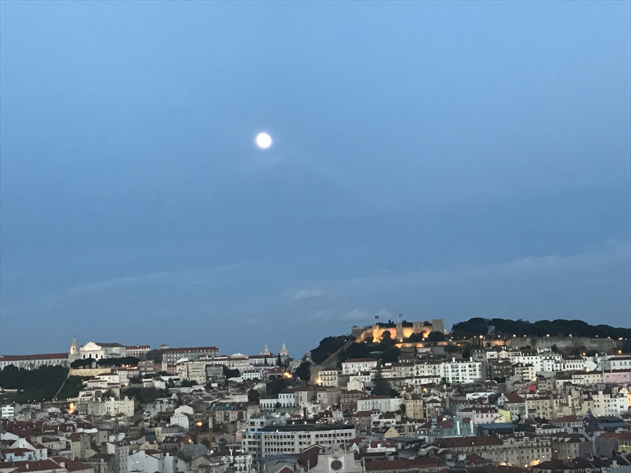 ロシオ駅そばのレスタウラドーレス広場に面しているグロリア線のケーブルカーで登るとすぐ横にあり、展望台は広いのでゆっくりと赤茶色の屋根の街並みやサンジョルジェ城や教会、テージョ川を眺めることができます。展望台には軽食や雑貨のお店もありました。