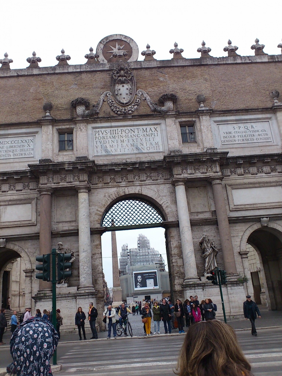 メトロA線のFlaminio駅から地上に出ると、目の前にこのポポロ門があります。昔はこの門がローマの北の入り口だったそうです。かなり彫刻などの装飾がなされていて、豪華な門です。この門をくぐると、広大なポポロ広場に出ます。門の前からは、この門の先にこんな広大な広場があるような雰囲気ではありませんが。
