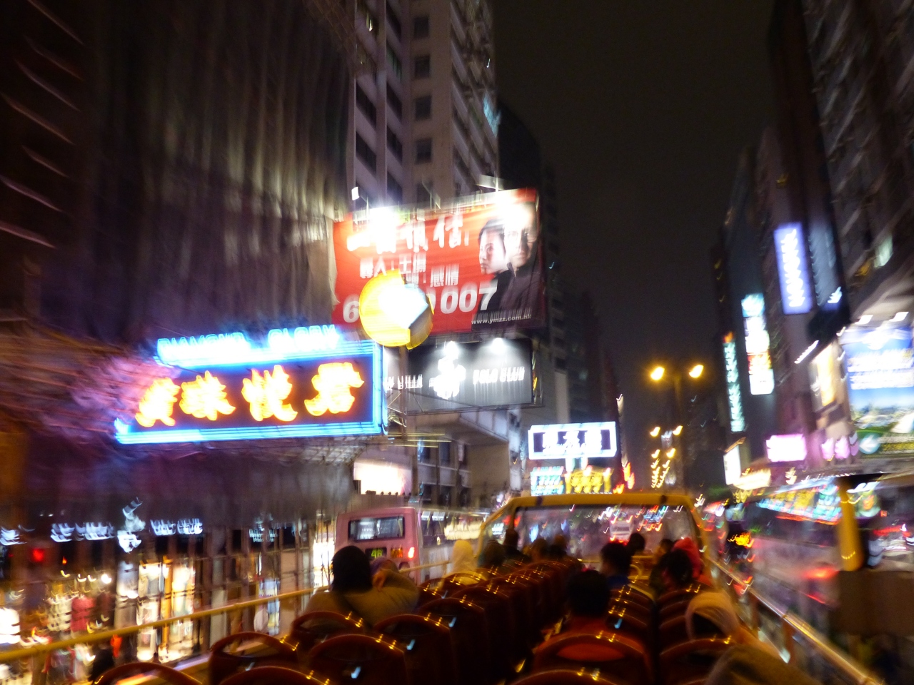 ネイザンロードを走っていると、すぐ後ろにもビッグバスがついてきていたので、おそらくそのバスはペニンシュラ19:00発のバスだったと思いますが、そちらの方が乗ってるお客さんが多かった。