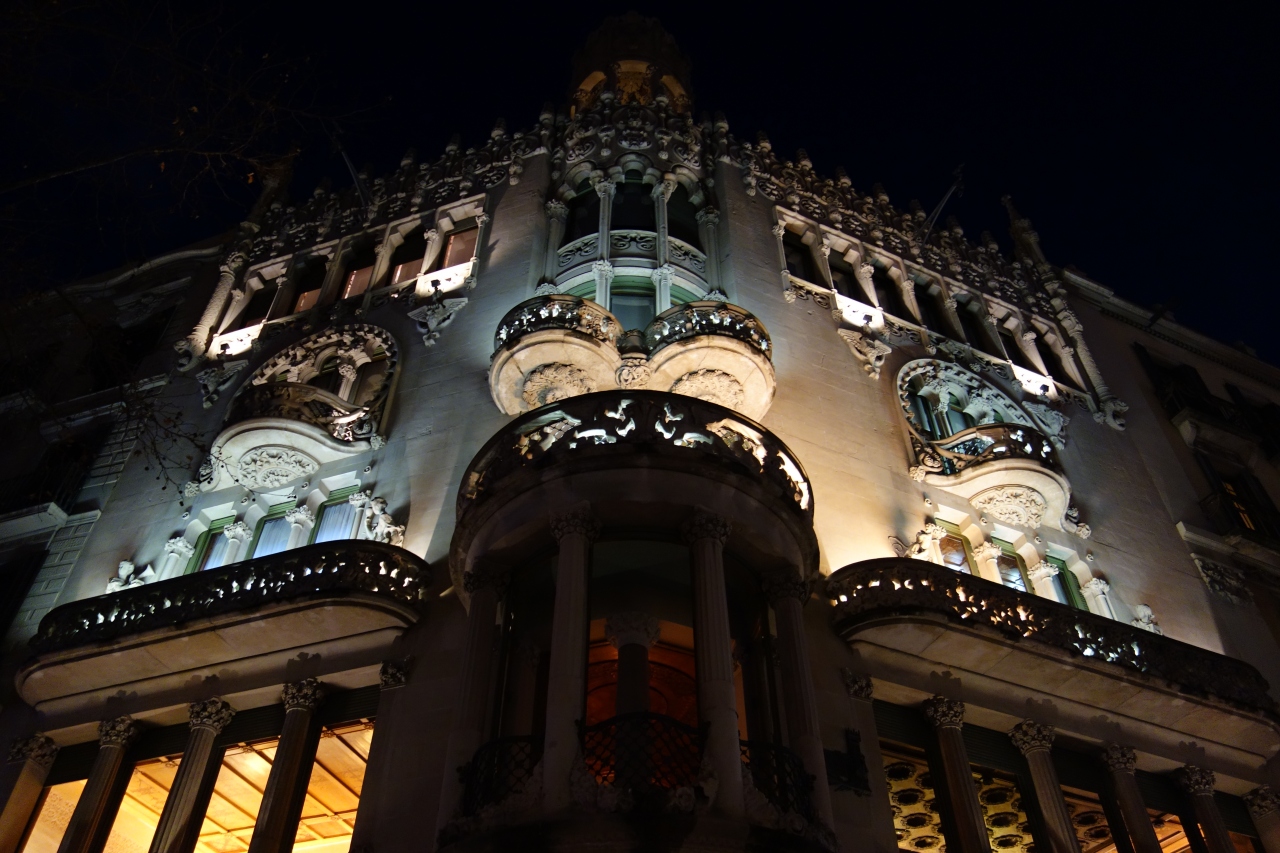 グラシア通りに面した1階にロエベが入っている建物で、モンタネールの作品ということは帰国してから知りました。華やかで上品な装飾で、内部見学が出来るとは知らず、外から何枚も写真を撮って帰りました。夜もライトアップされていて素敵です。