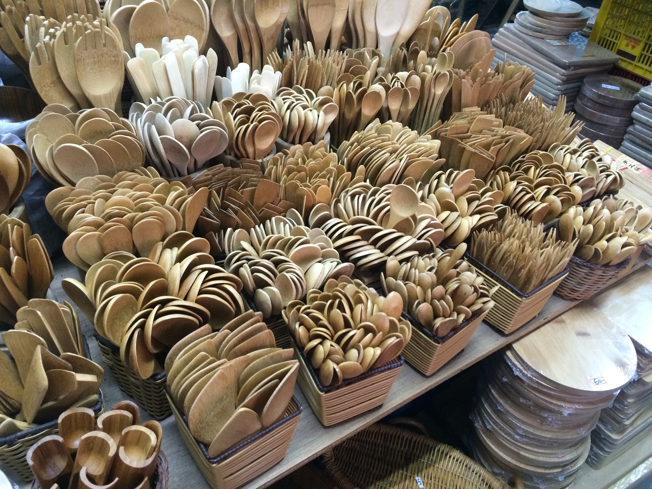 木のカラトリーを買いに行きました。スプーンフォークなどなどの小は20元、大は30元。ジャム用にナイフを数本と小さい杓文字を購入。今回の目的は鍋敷きとカッティングボードでしたが、価格が微妙だった為購入せず。残念。