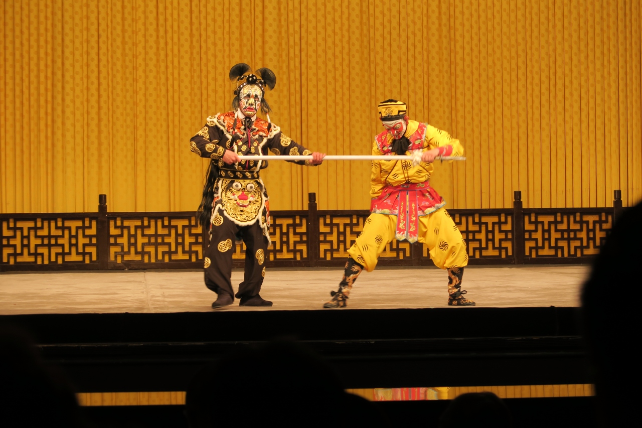 以前より、本場の京劇を観たいと思っていたが、今回は上海滞在中に、運よく公演が行われており、昼の部を見に行く。演目では、金銭豹という孫悟空にもちなんだアクション系の公演があり、楽しめた。字幕表示がある。三本立てで、2時間半の公演。客席からは、掛け声がかかったりして、面白かった。