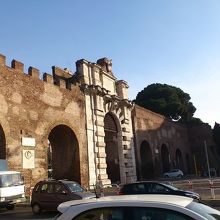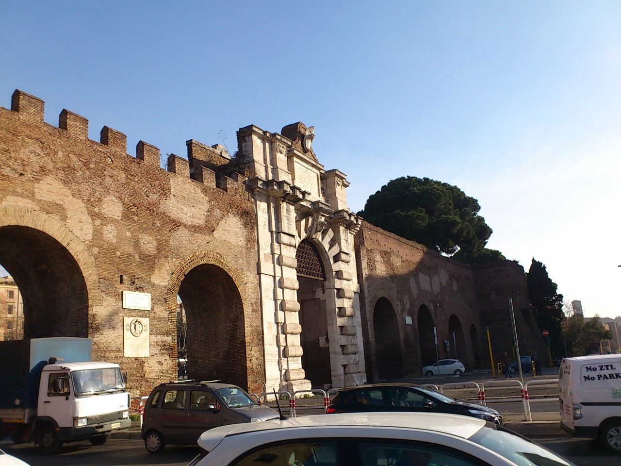 メトロのサン・ジョバンニ駅ら地上に出るとこの門があるので、それをくぐって左へ少し進むと、目の前にサン ジョヴァンニ イン ラテラーノ大聖堂が現れます。ローマの市内を囲む城壁の一部が残っていて、その一部として、この門があります。かなり太い道路が通っていて、車の交通量は半端ないです。