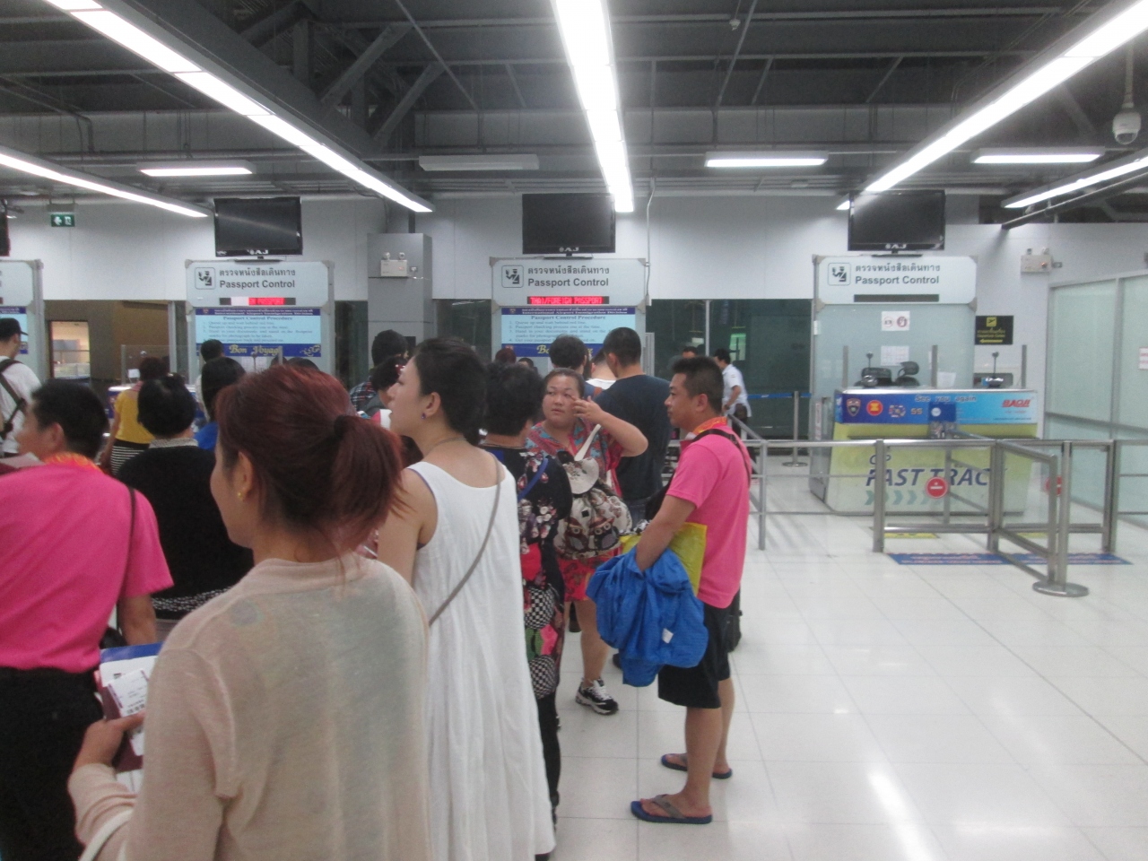 スワンナプーム国際空港行きの機内で、入国審査用、出国審査用が一緒になったカードが配布されます。入国する際、あらかじめ出国審査用のカードにも記入しておけば忘れないのですが、出国審査場でカードを持参していなかったり、未記入で指摘されている中国人、韓国人、インド人がいて審査場通過に無駄な所要時間がかかりました。