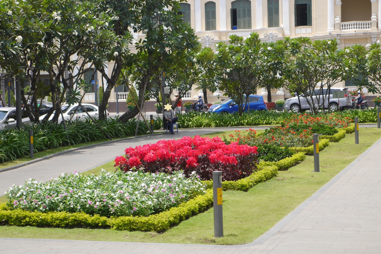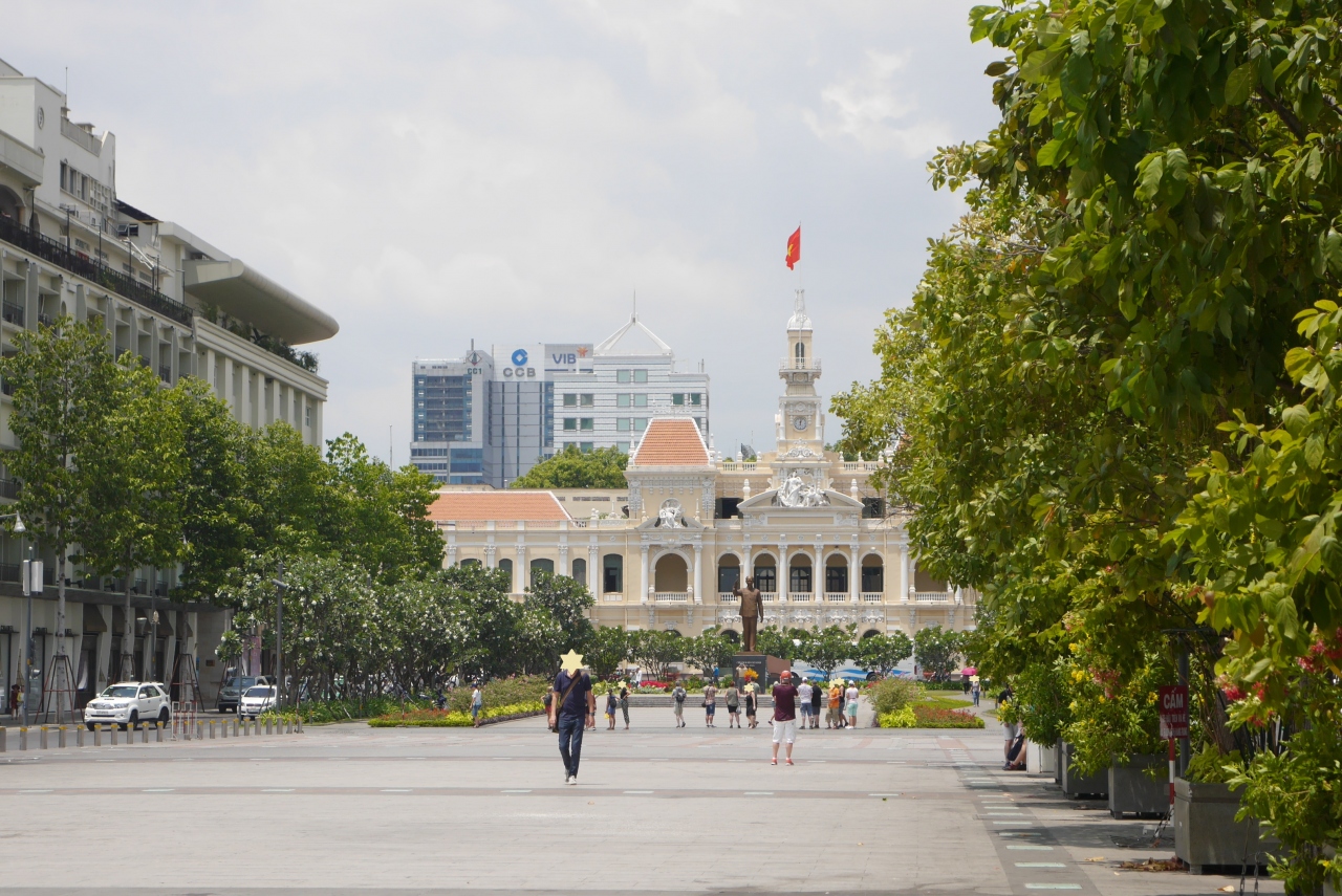 グエンフエ通りの突き当りにあり、道路からは少し高い位置に設けられています。中央にホーチミンの銅像があり、周囲は花壇が設けられています。