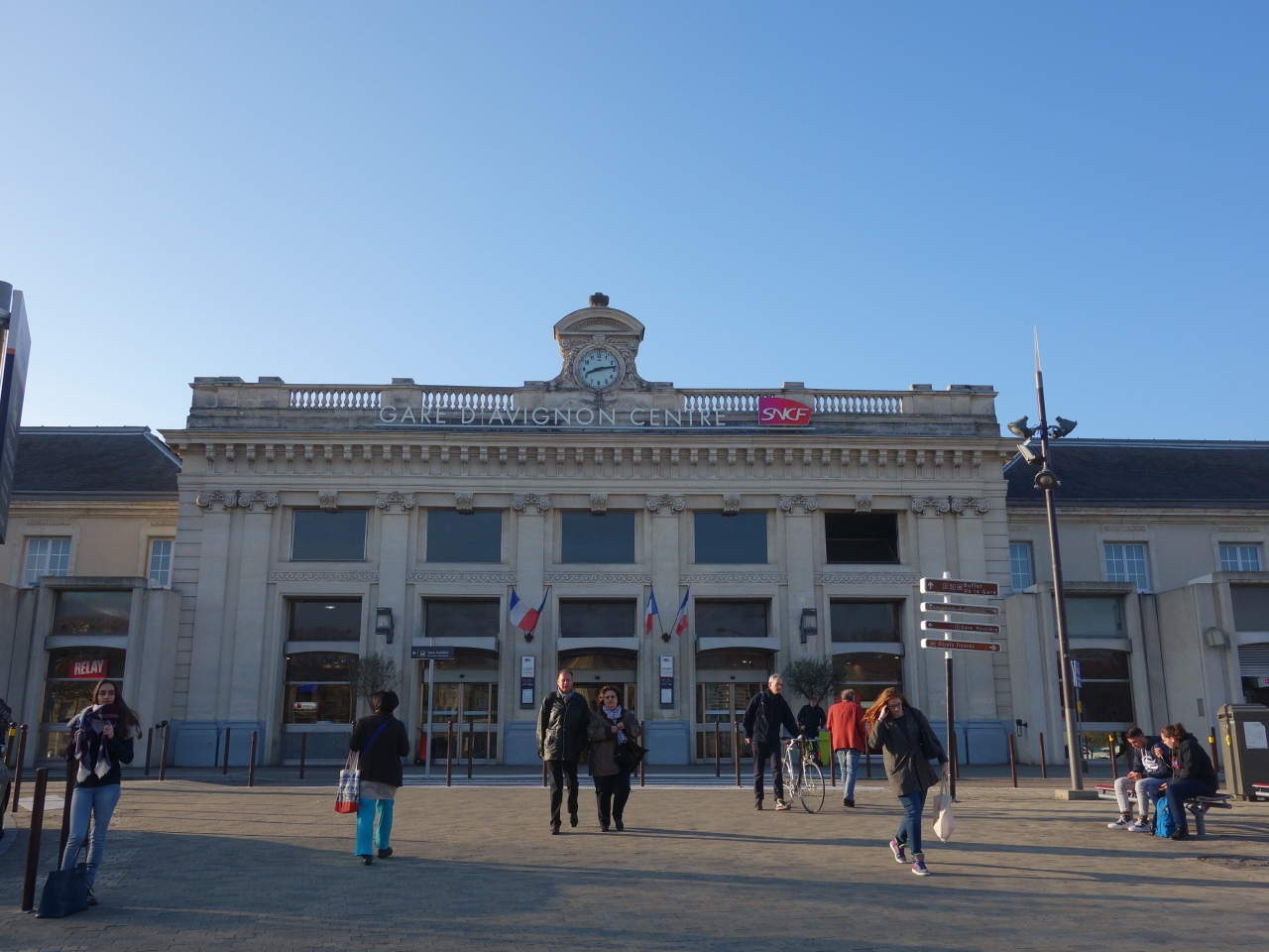 アヴィニヨン中央駅にはTGVは来ていません。別の駅です。中央駅は城壁のすぐ外,rフブブリック門のまん前にあります。ここから一直線に北に歩くと法王庁があります。