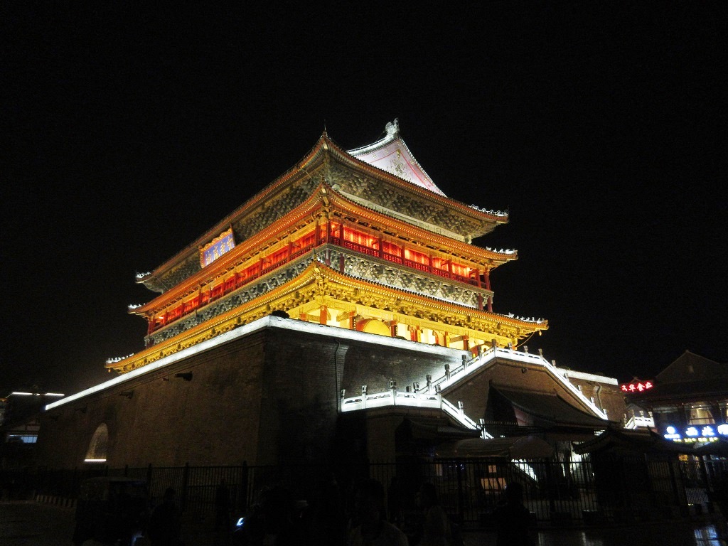 建物内の廊下部分に「大きな太鼓」が見えました。ナイトツアーで見に行ったので、近づくことは出来ませんでしたが、ライトアップされ、細部まで照らされた建物は実にきれいで、近くの鐘楼とともに幻想的な輝きを堪能しました。