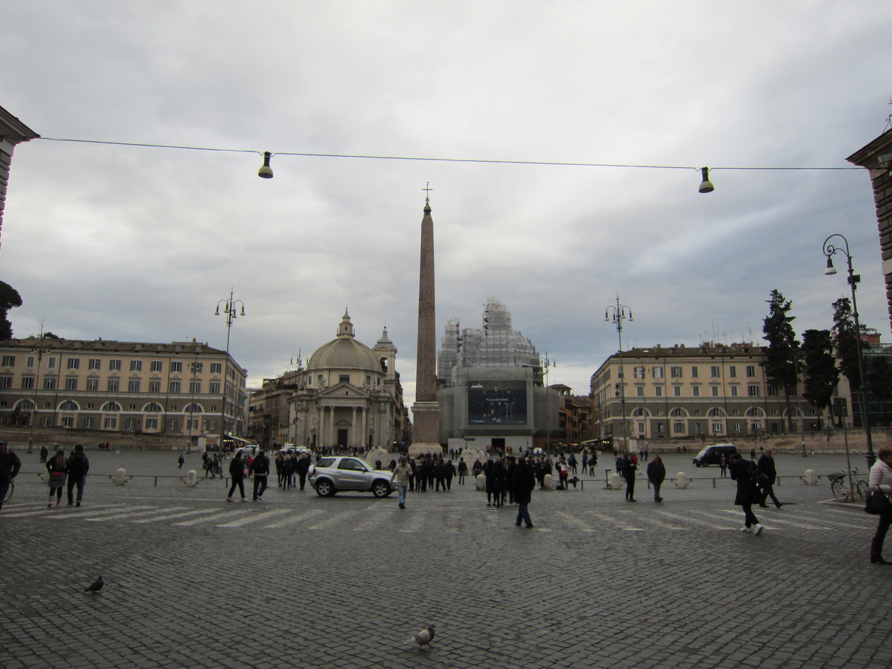 サンタ・マリア・デル・ポポロ教会に行く時に、ポポロ広場を通りました。広場のすぐそばに、サンタマリア・ デイ・ミラーコリ教会とサンタ・マリア・イン・モンテサント教会という、見た目がそっくりな双子の教会があります。双子教会を楽しみにしていたのですが、まさかの片方が工事中でした(涙)