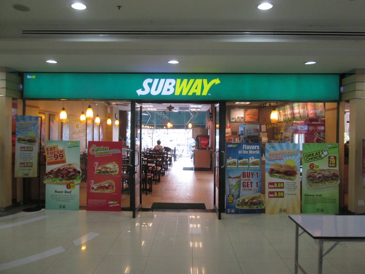 ジャスミンエグゼクティブスイートホテルショッピングプラザに入るとパンのいい香りがしますが、原因はこのサブウェイです。ついつい臭いにつられて店内に入ることがあります。100バーツ程度でサンドイッチを作ってくれ、テイクアウトしてホテルで済ませるということができて良いです。