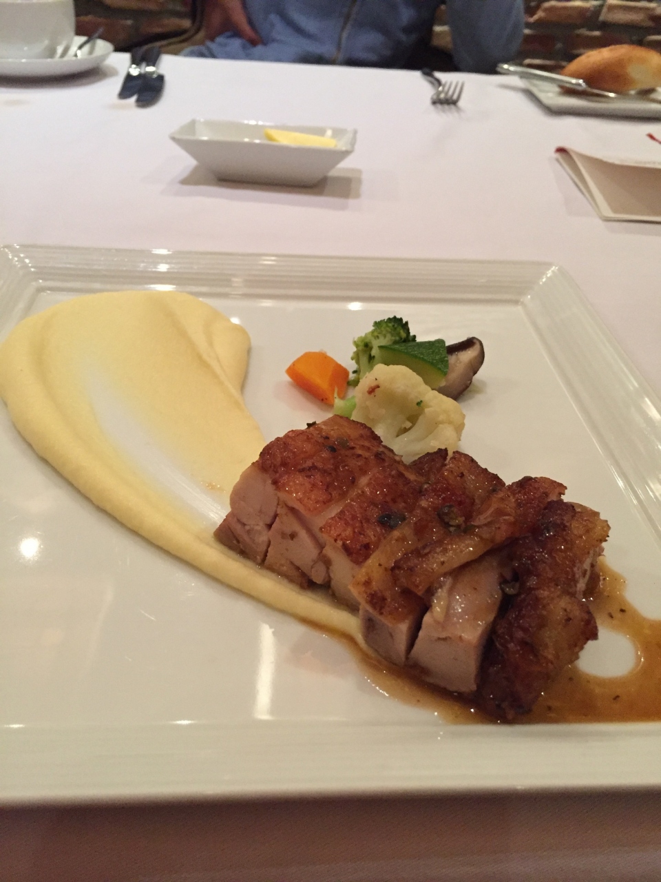 ツアーで利用しました。ヒルトンホテルのすぐ近くにあります。コース料理で、サラダ、マッシュポテト チキングリル、スイートです。プチケーキは甘すぎでした。パンが凄く美味しかったです。
