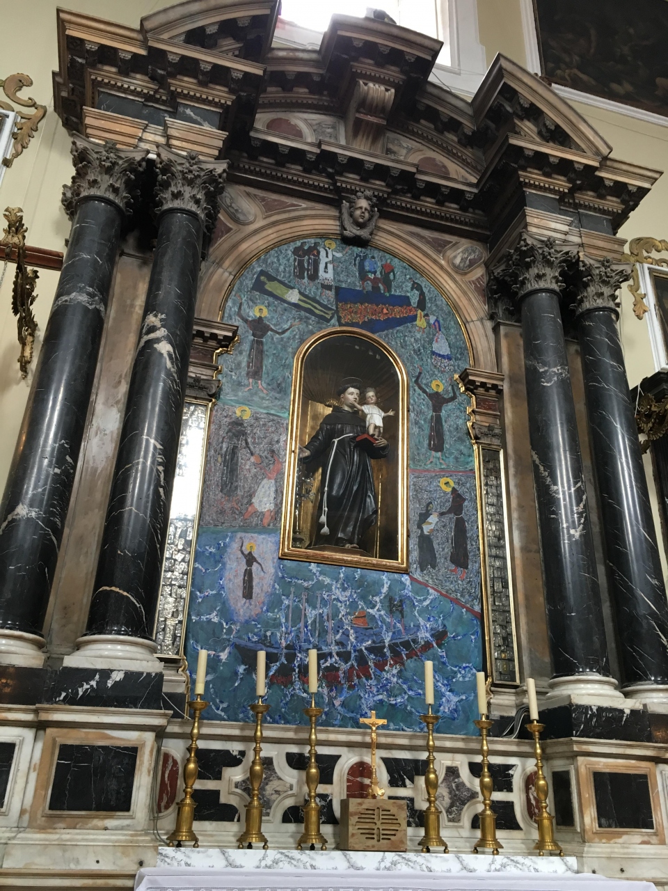旧市街のメインエントランスのピレ門を入ってすぐ左手側にあります。通りに面した教会部分と、建物に入って世界で3番目に古いと言われている薬局や博物館があります。見どころは、ファザードが美しい中庭。細かな彫刻が施されておりとてもキレイです。通りに面した教会の一部には小さなでっぱりがあり、そこに登ってTシャツを脱ぐと願いが叶うとか、、。若い人がチャレンジしてますが、かなり難しいのでほどほどにあきらめましょう。
