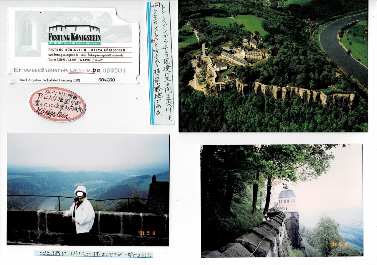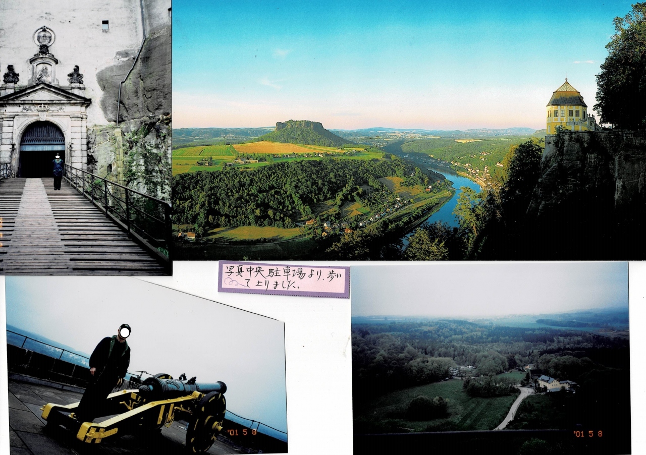 そのエルベ川が湾曲するあたりに巨大な台地・ケーニッヒシュタイン“王の岩”とも称されるものがあり、台上(海抜361m)は広さ9.5haもある。ドイツ最大の要塞として、750年間の歴史的な建物が30も建っている。後期ゴシック、ルネッサンス、バロック、19世紀の様々な時代の集合である。