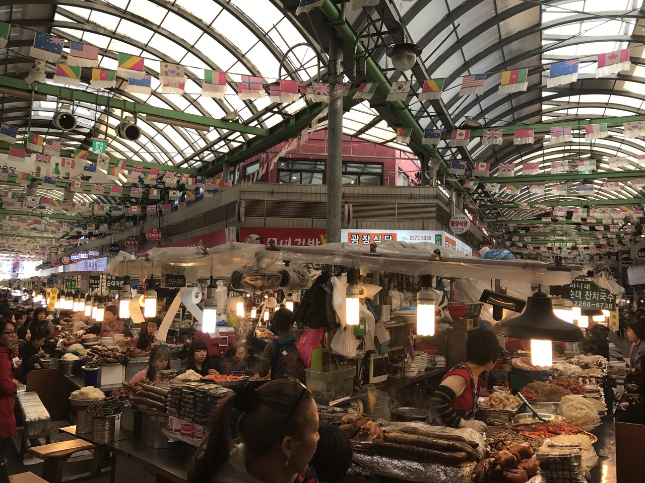 オシャレではないけれど韓国を感じられる場所。市場なので布団とか食器なども売っていますがマストはうまいもん通りと呼ばれる飲食の屋台が並ぶ一角。スンデやポリパなど地元の人に混じって食べる食事は最高です。