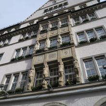 ややグレーがかった白壁を基調としたビルで、南面と西面には男性と女性の像があり、なんとなく貴賓がある。過去いろいろな写真では窓の梁には色鮮やかな花壇があったりしたが、この時期は設置されておらず、ちょっと殺風景かも!