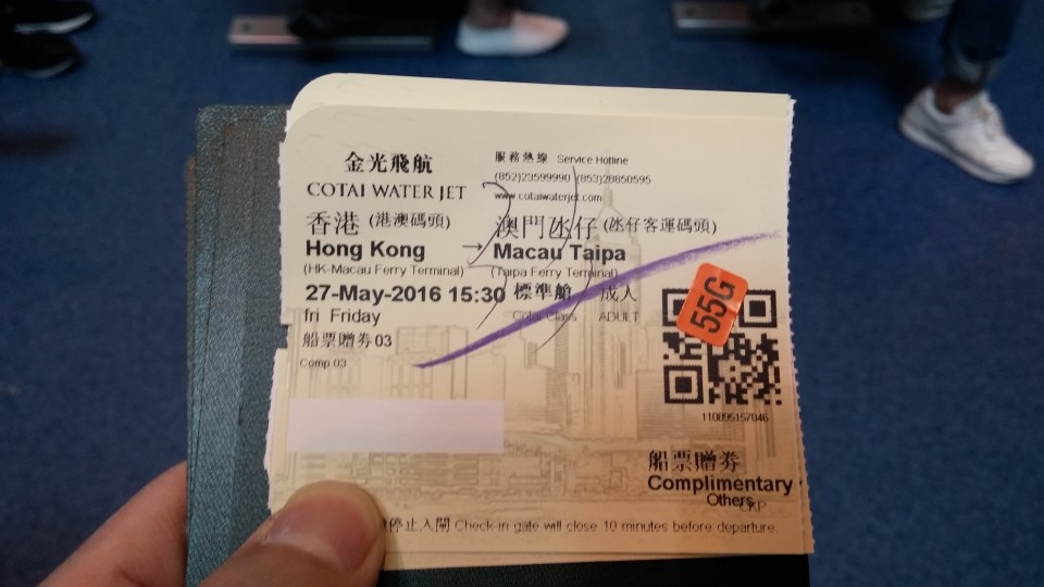 コタイジェットは、香港とマカオを結ぶフェリーです。香港国際空港から直接マカオに移動できる路線図おり、香港市内のターミナルからマカオに移動することもできます。チケットはオンラインで事前に購入することもあり、ターミナルから直接購入することもできます。約1時間ほどかかり、設備はきれいで、内部に売店もあって、簡単なスナックも楽しめました。ただし、天候が荒れ模様の日には波がひどく船酔いに注意する必要があります。