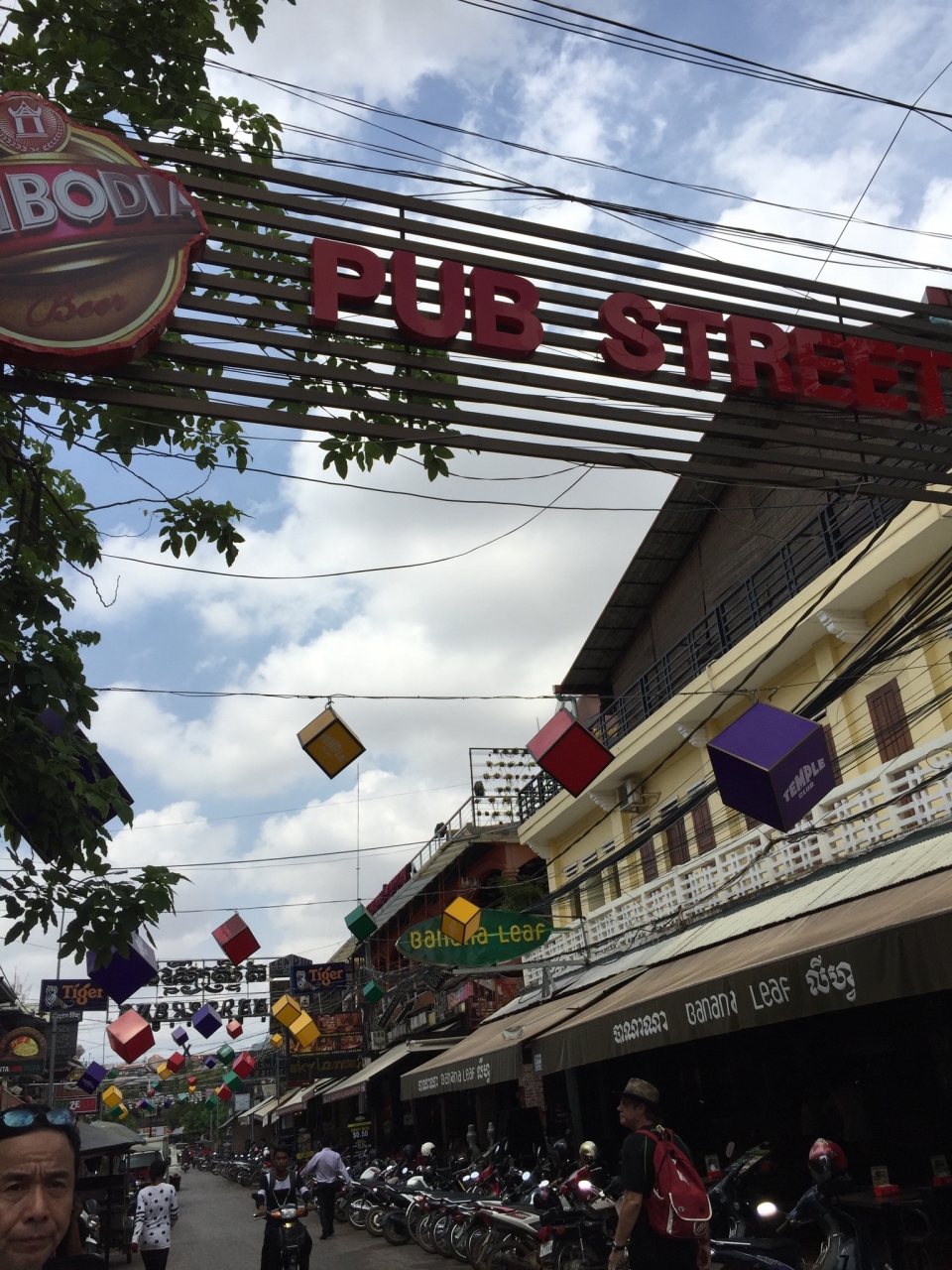 昼に行ったので賑わいやネオンはありませんでした。ランチ時でしたがモーニングを食べている方が結構いました。ビールは大体0・5ドルのお店が多いです。トュクトュクも沢山待機してるので帰りに困る事は有りません。