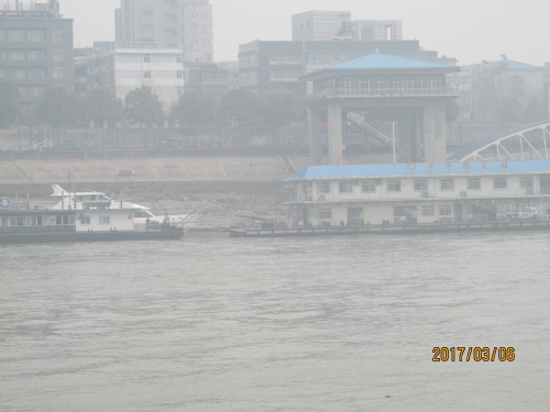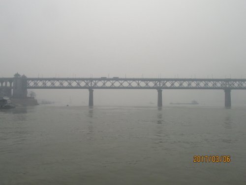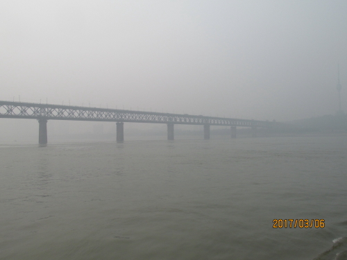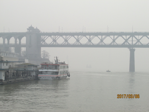 共産党第五次全国代表会議旧址のある中華路を西へ進んだ所に中華路埠頭に突き当たります。ここから長江フェリーに乗って江漢路埠頭に行く事が出来ます。料金は5元。フェリーに乗っている間に長江大橋を眺める事が出来ます。到着する江漢路は英国租界のメイン道路だった場所で、今は武漢一の繁華街と成っています。当時の建物も多く残っており、今はショッピングストアになり、活用されています。ゆっくりと船の上から長江大橋を眺めようと思ったら、残念ながら霞んで良く見えませんでした。