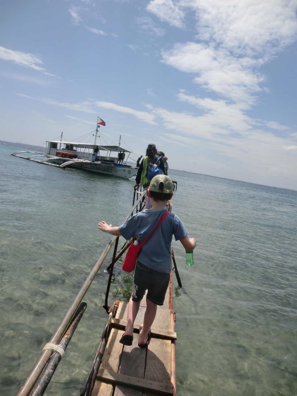 ヒルトンポートからオランゴ島へ定期船で行ってきました。大人一人片道12ペソ(30円ほど)安すぎるでしょ!20分ほど船に乗ると到着です。船に乗るときの桟橋は半端なく怖いです。スーツケースがあったので心配だったのですが、そこはチップ目当ての運び人がいるので大丈夫でした。