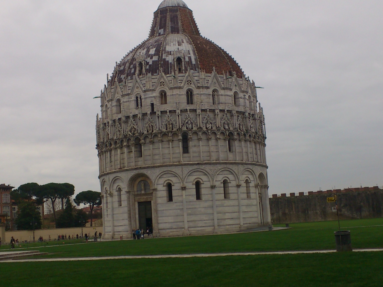 ピザの斜塔のある広場にある丸型が特徴的な建物です。ピザの斜塔とは別料金になります。緑の芝生の中に、真っ白な丸い姿がとても美しいと感じました。中に入って見ると、ガランとしていて説教壇が奥にあるだけでした。見るものも特にないので、さっと帰ろうとしたら、係りの人が声を出してくれました。ものすごいエコーが掛かってびっくりしました。後で調べると30分毎にエコーショーがあるらしいです。今回は一声だけのちょっとしたサービスのようでした。ラッキーでした。