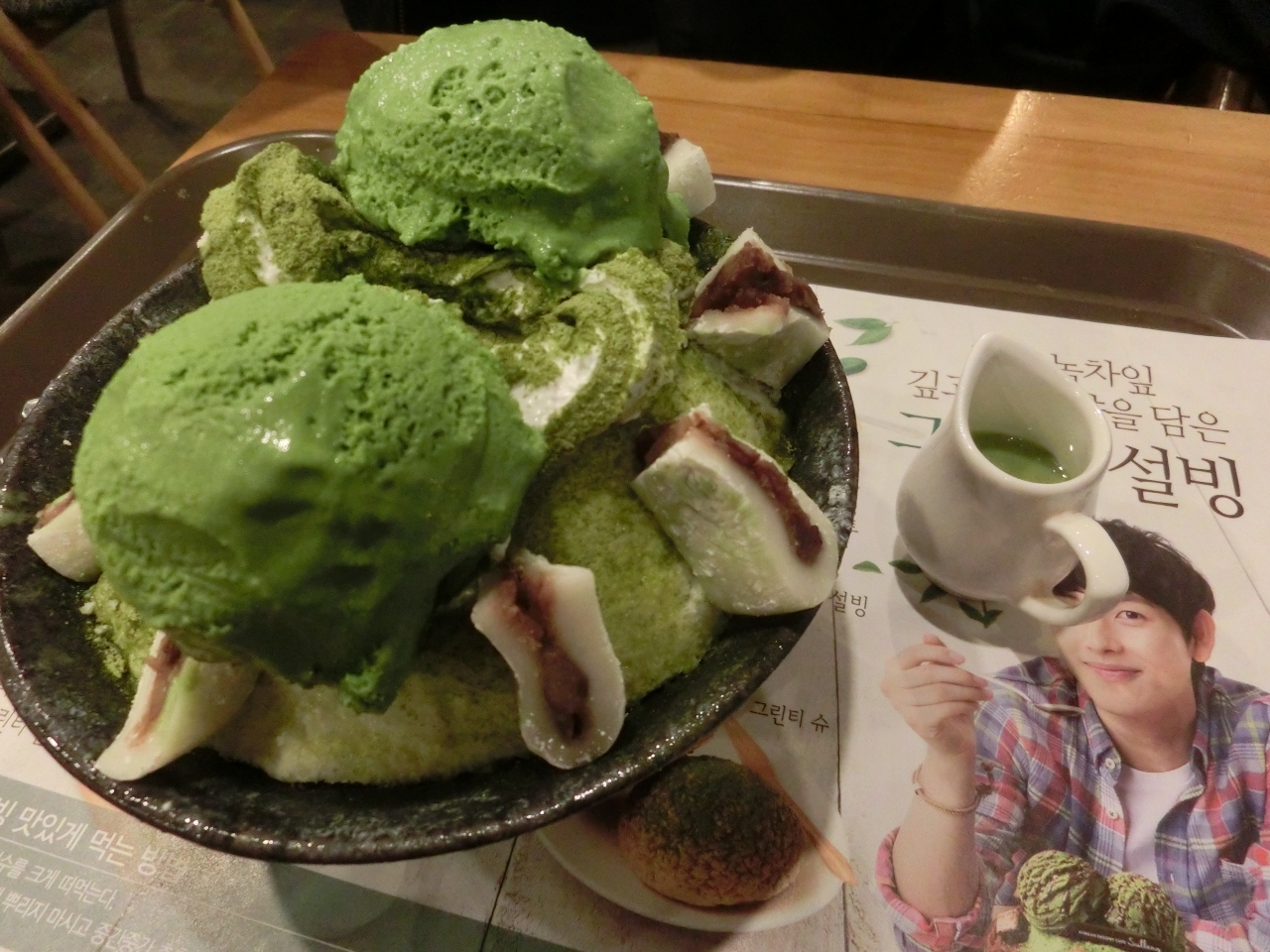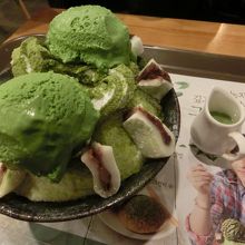 ふわふわというか、びちゃびちゃ解けないサラサラのパウダースノーって感じの氷で、アイスクリームや周りにトッピングされている大福とマッチしていました。