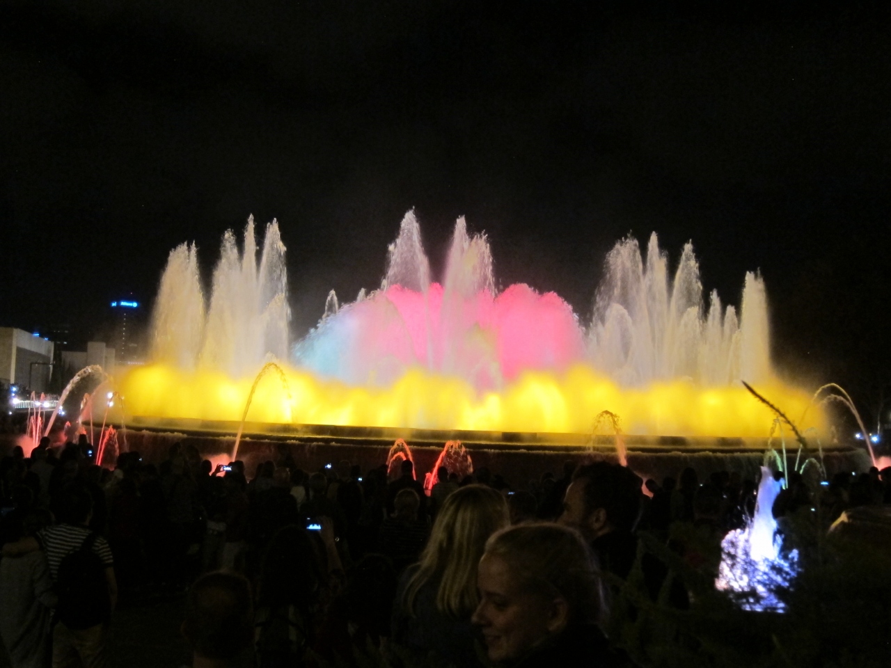 Espanya広場で週末に行われる噴水ショーで、駅から会場までは簡単に歩いていけます。