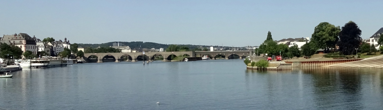 この橋は、三角地帯でライン川に合流するモーゼル川の一番下流に架けられたアーチ橋。眼鏡橋のようで、絵になる橋だ。