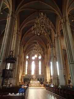 以前に来た時と同じく、今回も右側の尖塔部分が修復中でした。ゴシック様式の教会で、中に入ると天井が高かったです。夜はライトアップされていて綺麗だったので、是非夜も行くことをおすすめします!