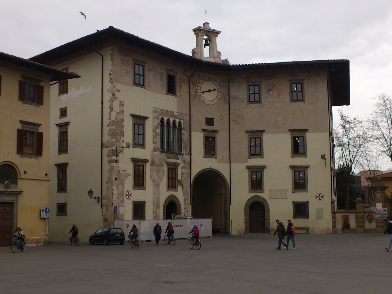 ピザ中央駅を降りて、ピザの斜塔まで歩いて行きました。途中のカヴァリエーリ広場にこの時計堂があります。カヴァリエーリ広場には、サント ステファノ騎士教会やカヴァリエーリ宮などがあるので、ちょっとしたピザの観光スポットになっているようです。ピザの斜塔にはこの時計堂の下をくぐって行き、1回右に曲がると到着します。
