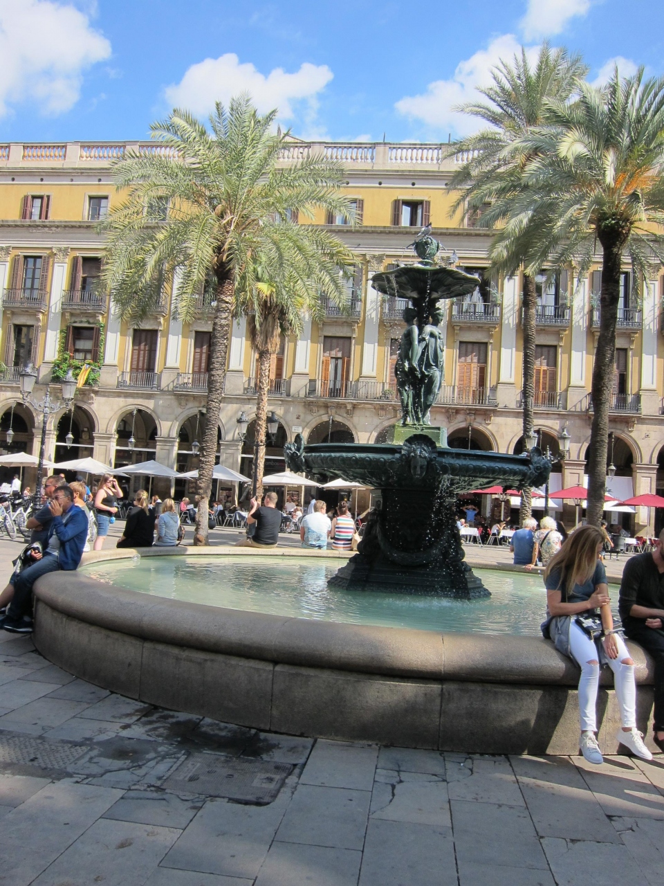 旧市街ゴシック地区の中心の広場で、19世紀の修道院を改造した広場には、中心に噴水が設置、広場を囲むようにバルやレストラン並び、賑やかな広場です。1878年、ガウディが学校卒業後に最初に製作した街灯があるので、必見!