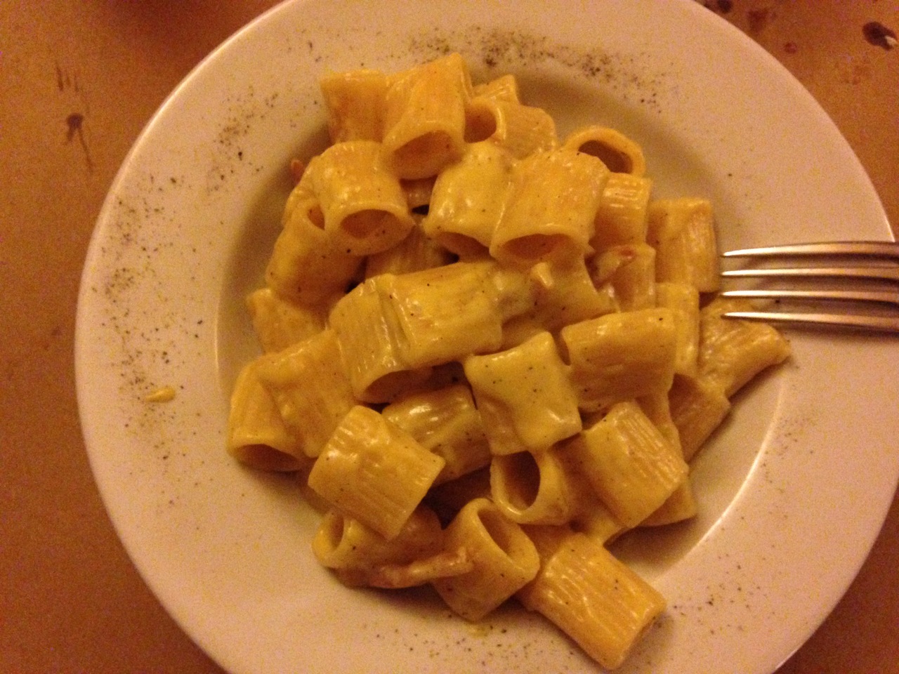 カルボナーラとアマトリチャーナとカプレーゼを注文しました。イタリアという本場で食べたせいか何でもないカプレーゼがとても美味しく感じました。パスタは今ひとつでした。カルボナーラはかなりのアルデンテ顎が痛くなるほどの固茹で。アマトリチャーナは美味しいのですが、豚肉の臭みが少々キツく感じました。