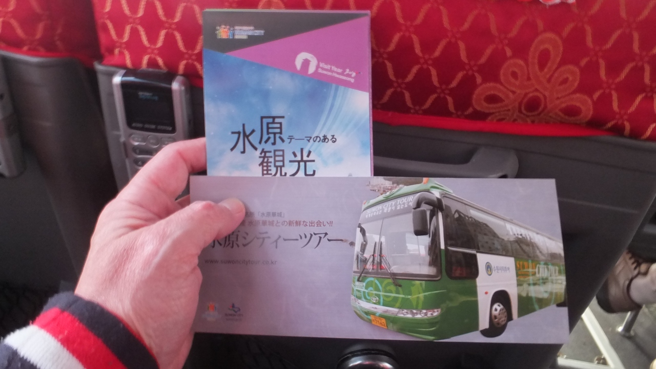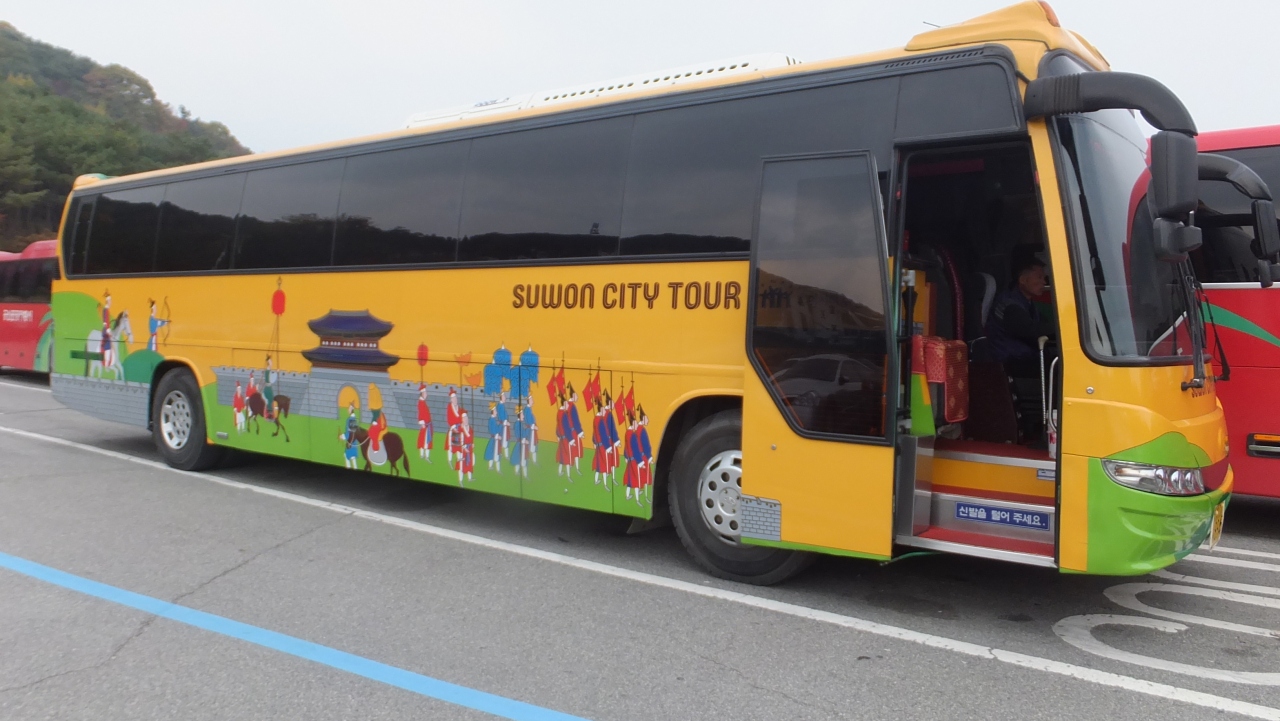 水原シティツアーには2コースありますが、水原駅観光案内所⇒解憂斎⇒華西門経由⇒華城行宮⇒長安門経由⇒華虹門(訪花隨柳亭)⇒錬武台⇒水原華城博物館と周り、約3時間30分の行程の「水原華城コース」に参加しました。